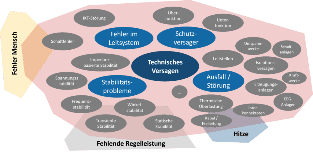 Beim technischen Versagen gibt es eine ganze Reihe möglicher Ereignisse. Einige davon werden direkt von anderen Aspekten beeinflusst. Ein Beispiel hierfür ist die verstärkte thermische Überlastung bei extremer Hitze. Abbildung 3 gibt einen ersten Überblick, der noch deutlich erweitert werden kann. Er zeigt jedoch bereits ein gewisses Spektrum.